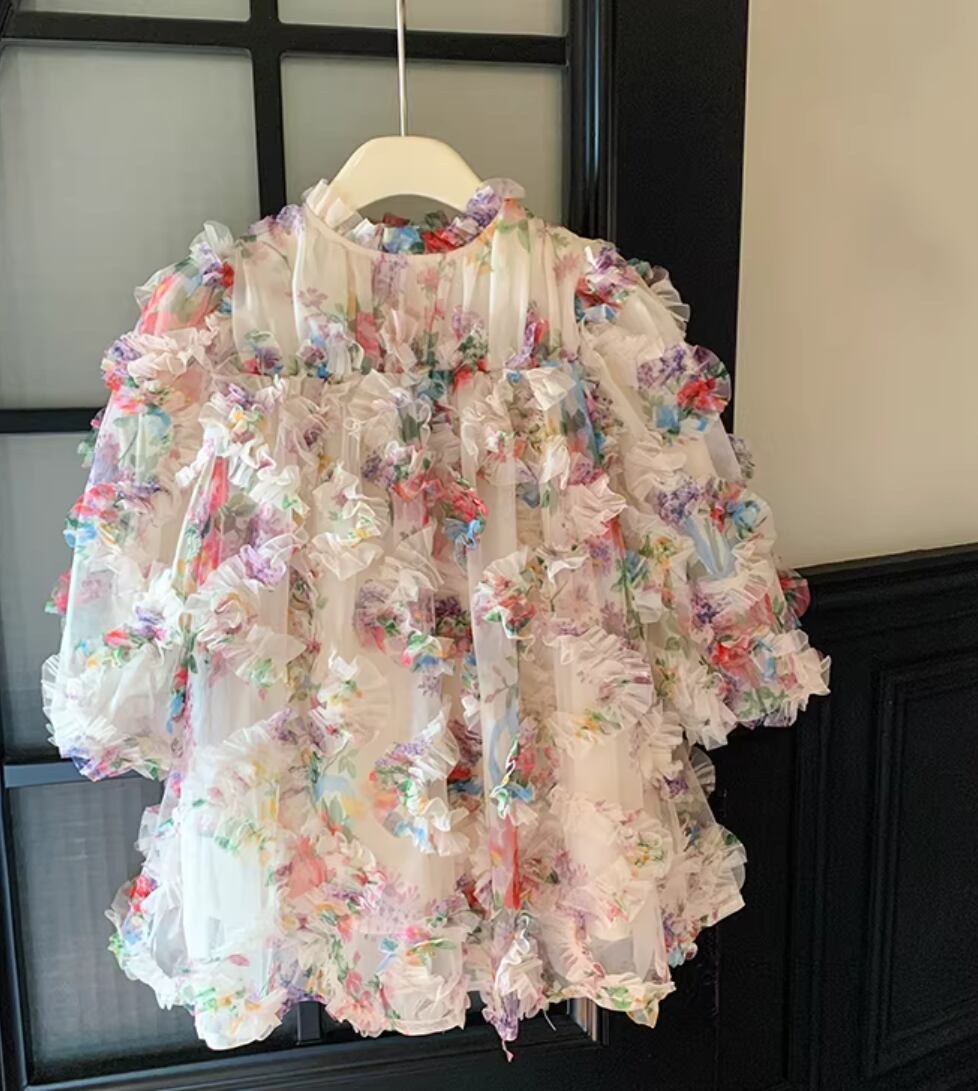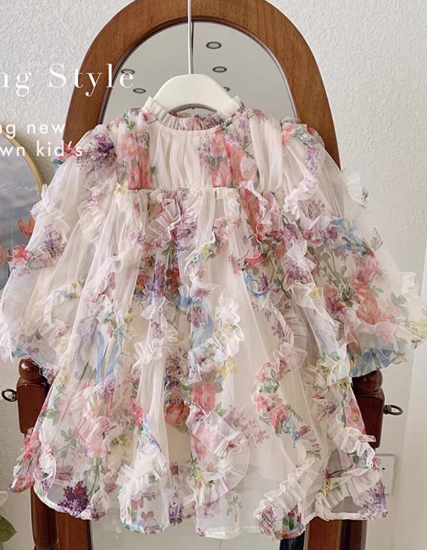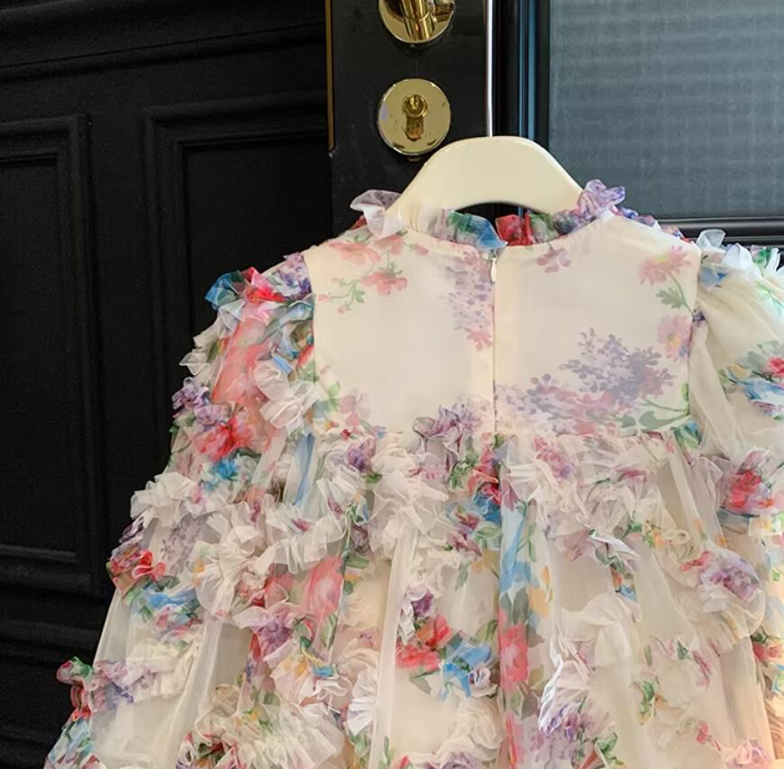 90~140 花柄 ワンピ フリル カラフル ドレス 子供 ピアノ 発表会 フォーマル 女の子 子ども 上質なドレス 上品 豪華 結婚式 卒業式 リボン お姫様 ワンピース ジュニア パーティー