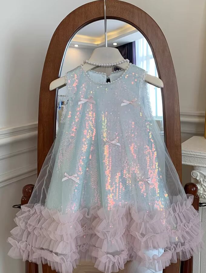 子供服 リングガール 女の子 ワンピース スパンコール ドレス チュール 袖なし キラキラ プリンセス 上品 可愛い 90-150cm