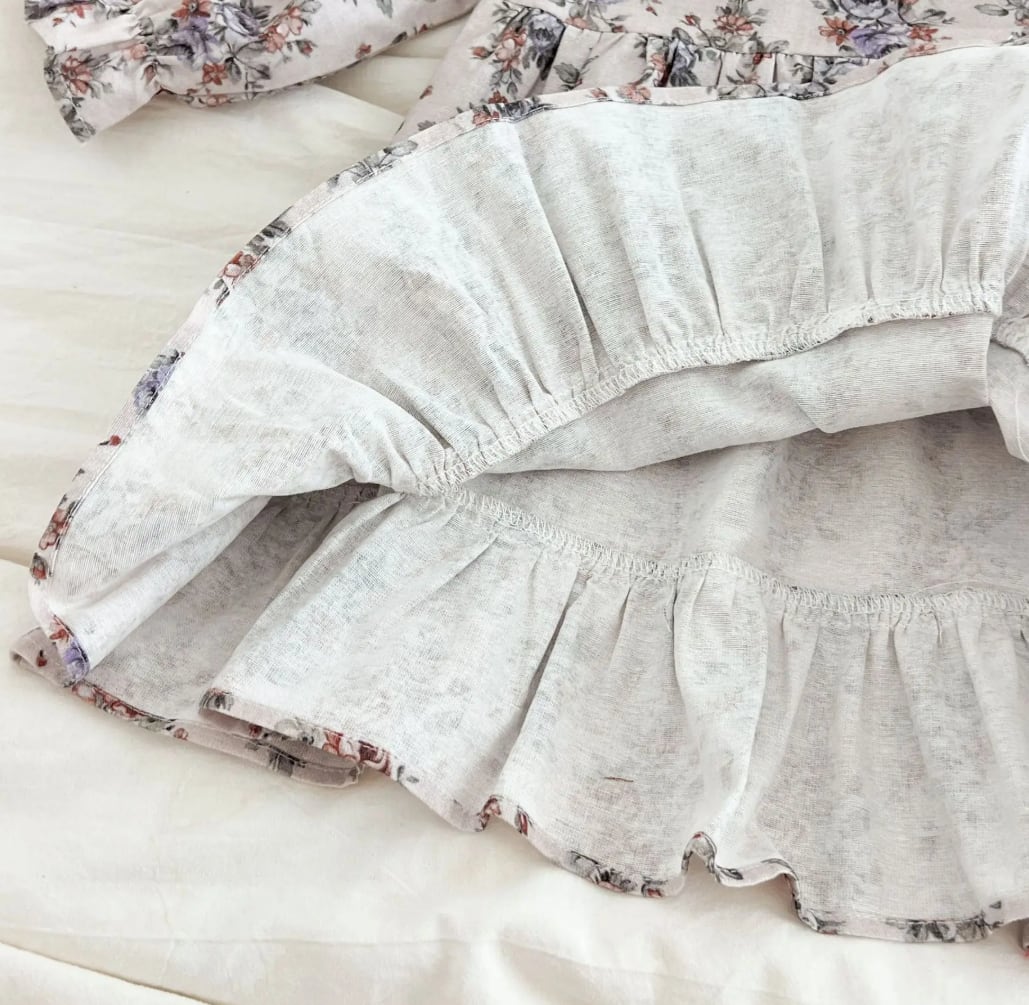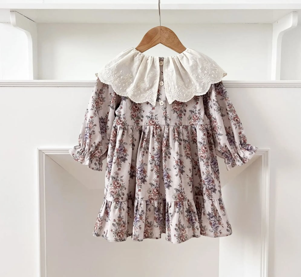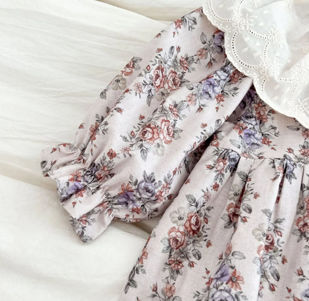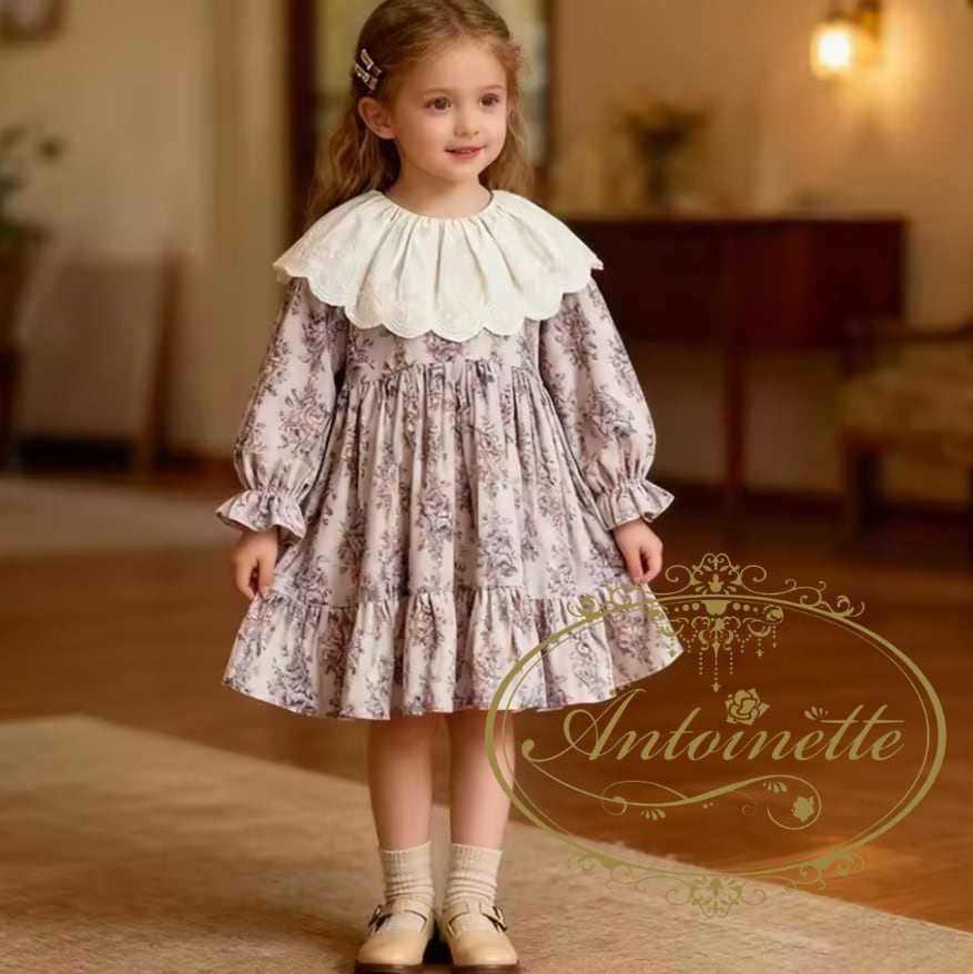90~130 おしゃれ 春 こども 子供服 ボタニカル フラワー 襟付き ワンピース キッズ 長袖 花柄刺繍 女の子