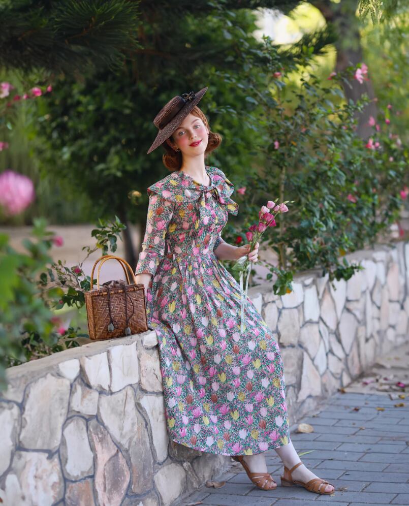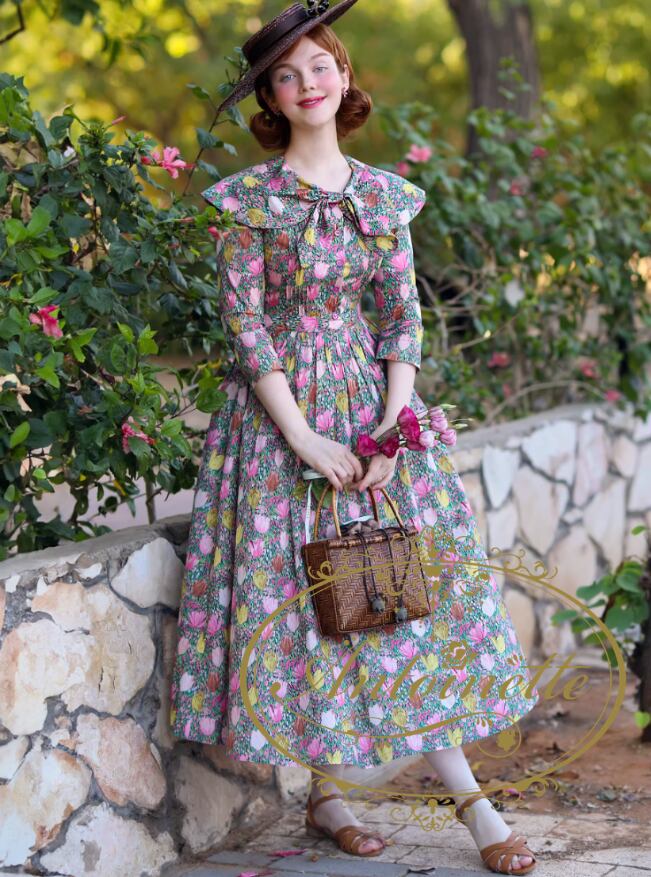 S~XL レディース ワンピ 花柄 レトロ アンティーク 70年代 ドレス 春 ガーリー 大人 aライン 膝丈 レトロワンピース ドレス 50年代 ロカビリー スイングワンピース パーティー カジュアル 可愛い ファッション アメリカ国旗プリント スカート エレガンス 大きいサイズ フォーマル きれいめ