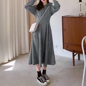 ワンピース 裏起毛 レディース 長袖 フード付き ロング丈 マキシ丈 フレア Aライン ハイウエスト タイト パーカー ワンピ タック 上品 おしゃれ きれいめ カジュアル あったか 黒