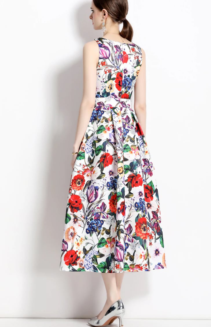 レディース 花柄 ワンピース ノースリーブ 華やか 豪華 パーティー
