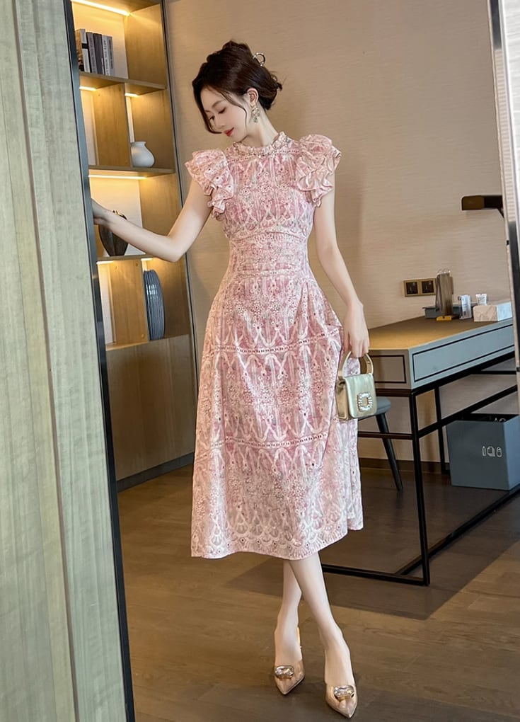 レディース ワンピース ピンク おでかけ 着痩せ 可愛い おしゃれ きれいめ お呼ばれ 結婚式 通勤 ドレス 夏 秋