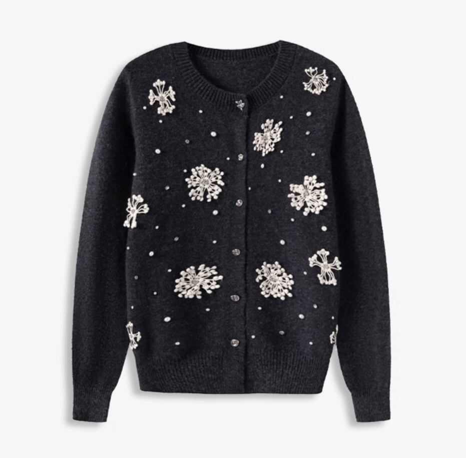フリーサイズ 大人 2カラー レディース カーディガン ビジュー ホワイト グレー OL 通勤 通学 きれいめ
