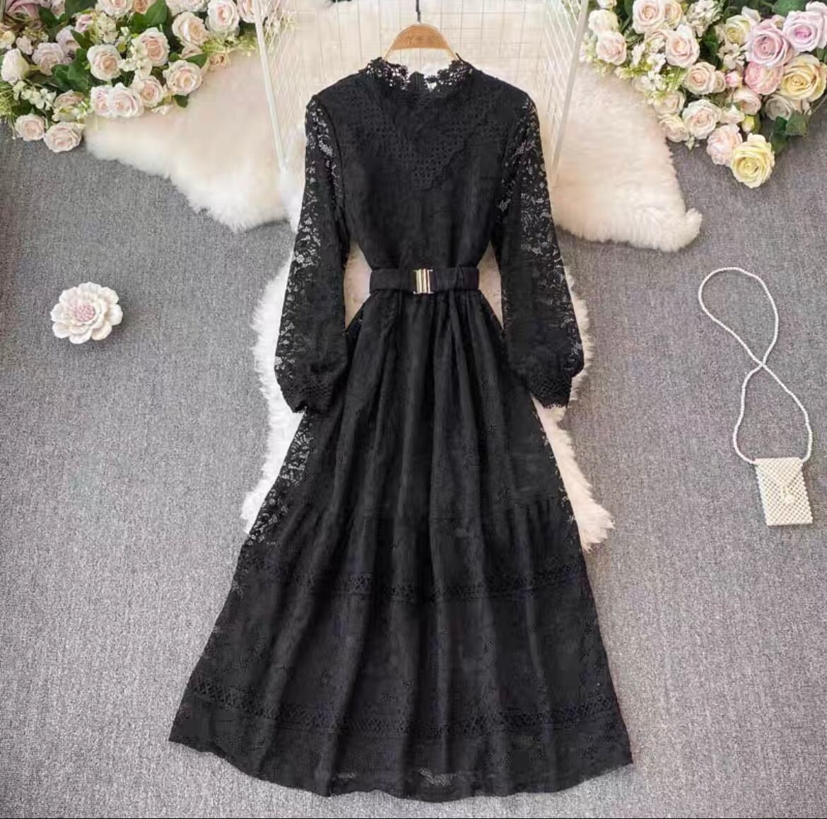 4カラー ワンピース レース 長袖 パーティー 二次会 上品 オーガンジー